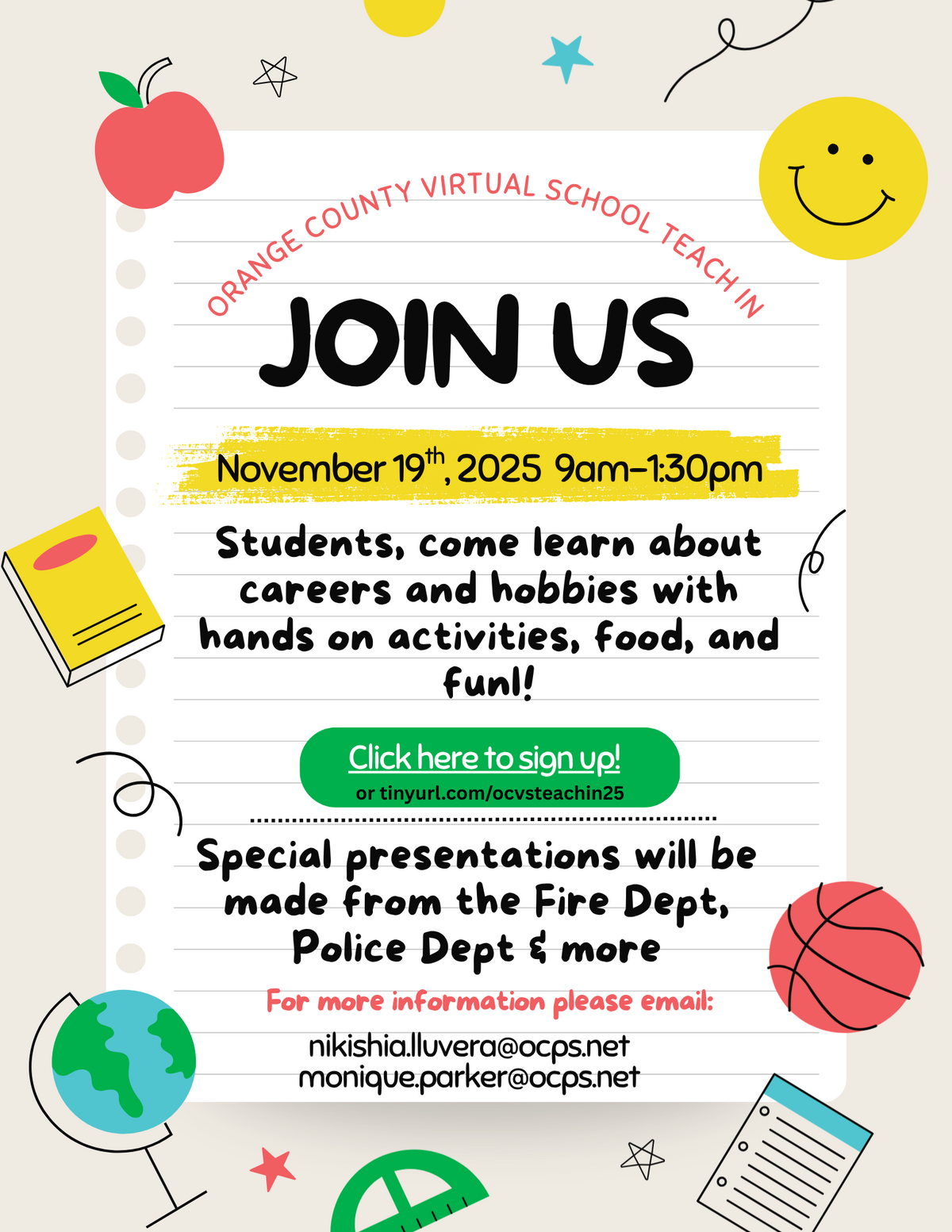 We invite you to join our Charger community on Facebook at Orange County Virtual School, follow us on instagram @ocvs_orlando, or connect with us on X @OCVS_Orlando
